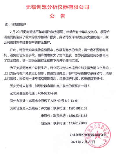 天災(zāi)無情人有情,創(chuàng)想儀器永遠(yuǎn)和客戶緊密的聯(lián)系在一起!